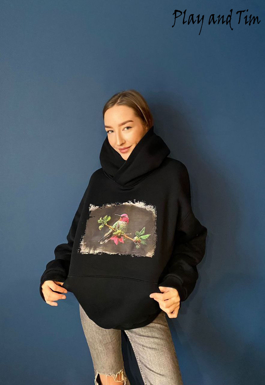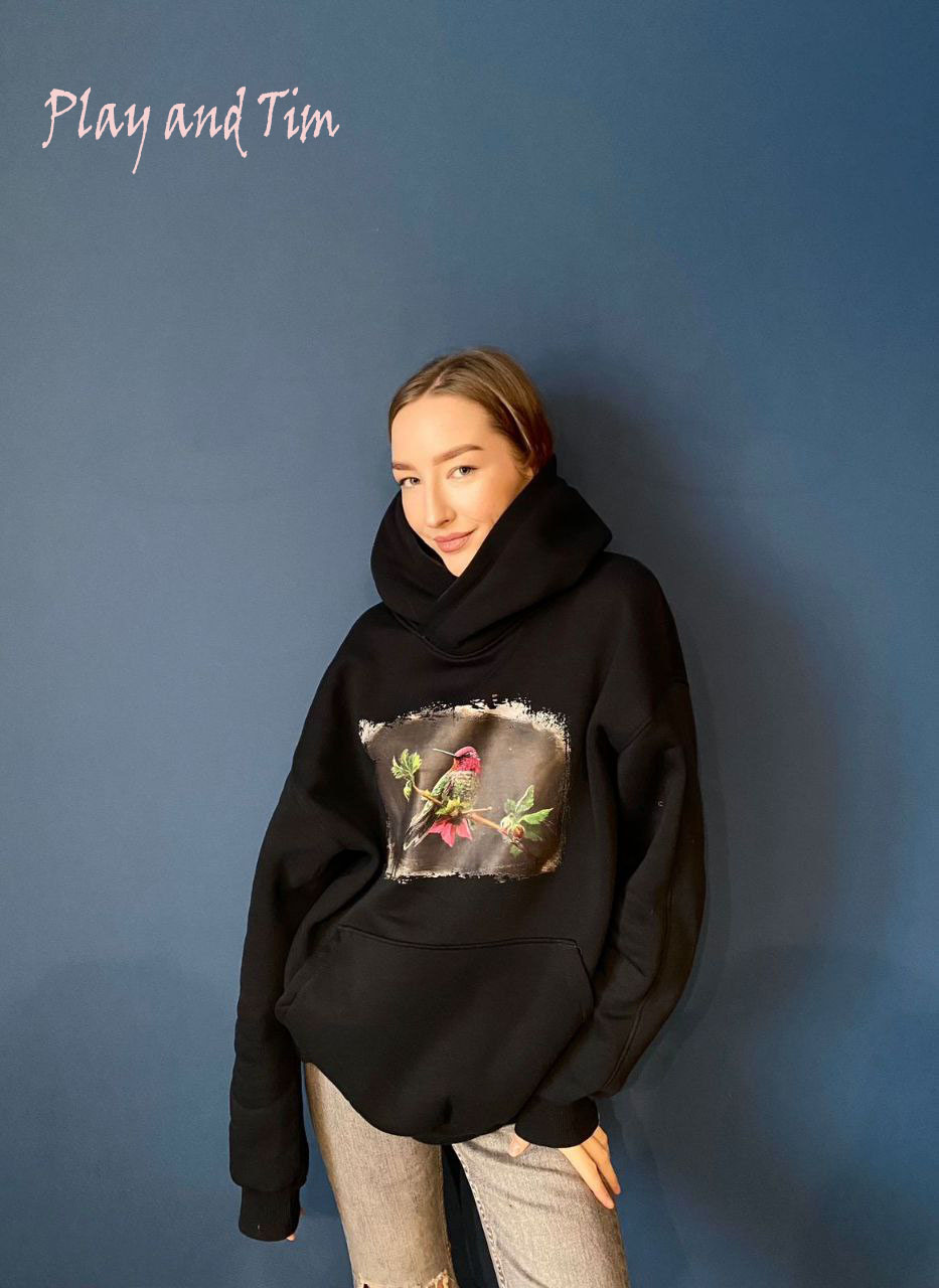 Худи Колибри-Play and Tim. Изготовлены из высококачественного натурального хлопка. Материал обладает отличной воздухопроницаемостью, что обеспечивает комфорт даже в самую жаркую погоду. Хлопок — гипоаллергенный, идеально подходящий для чувствительной кожи. Принт наносится с помощью современных технологий, обеспечивающих чёткость изображения и долговечность цвета.